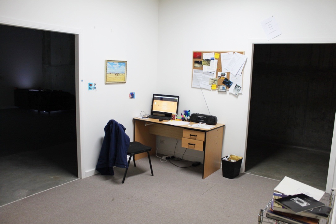 O: Yes the person in the office is imagining the things in the other areas of the gallery.